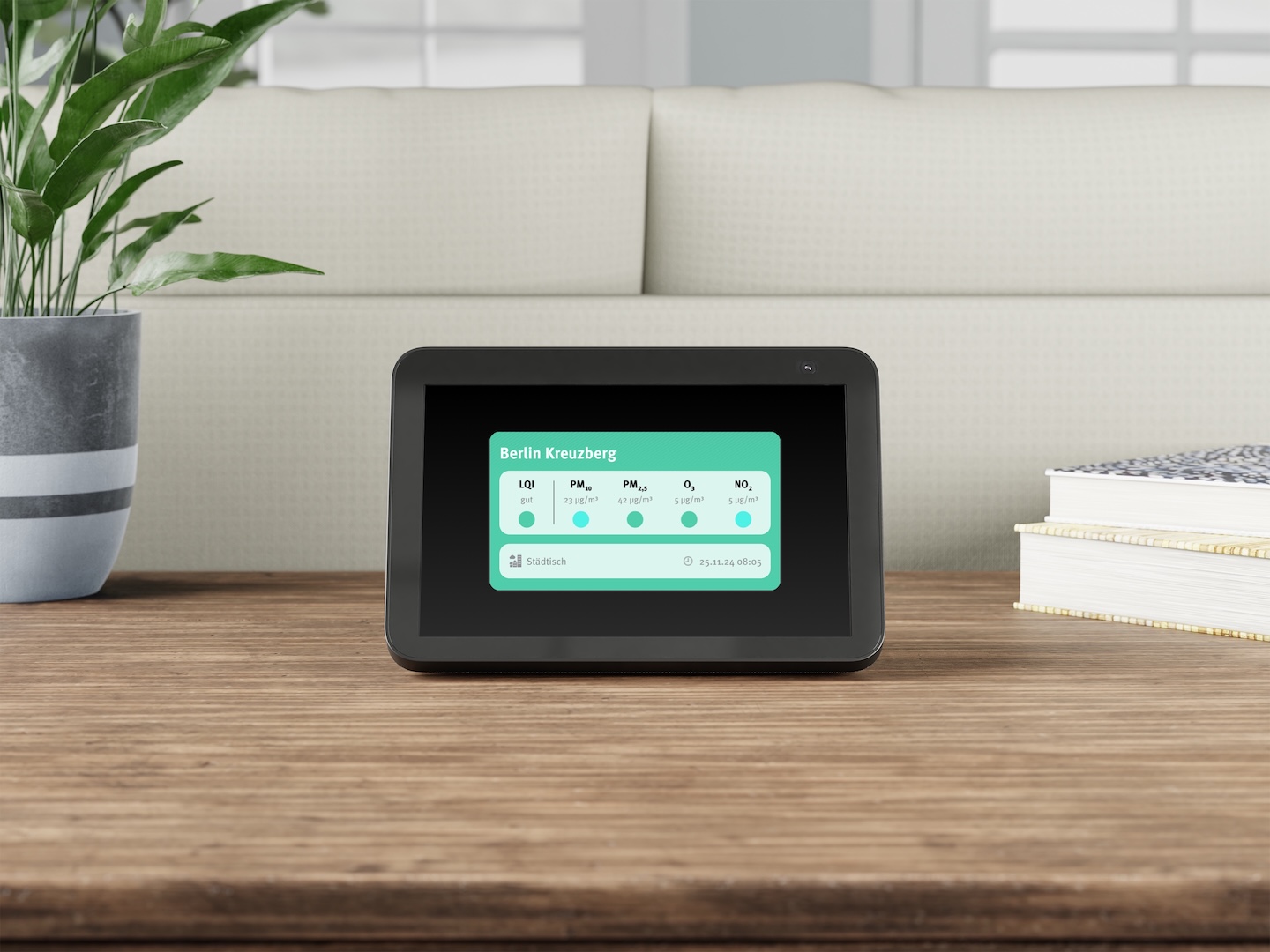 The app is built for iOS and Android phones and is localized in German. The Amazon Alexa skill can be activated with the phrase “Meine Luft”.