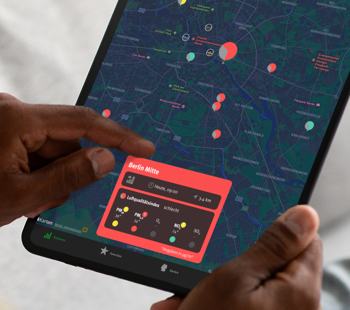 How good is the air, that we are breathing? For the Umweltbundesamt we built the app “UBA Luftqualität” for iOS, Android, Apple Watch and Amazon Alexa. It uses current, official data gathered by over 300 UBA measuring stations and shows contaminants like fine particulate matter (PM₁₀), nitrogen dioxide (NO₂) and ozone (O₃) and based on them the air quality index (LQI) for a given time and location. Historical data of recent days and weeks is also available.